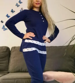 Granatowa Piżama damska Paula Sorbetto z dodatkiem koronki długi rękaw i spodnie