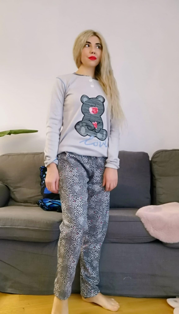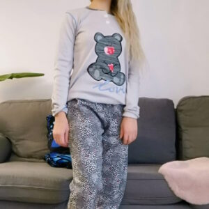 Towar nowy, Piżama damska Odelia Sorbetto z misiem długi rękaw i spodnie outlet, posiada oryginalne, papierowe metki.