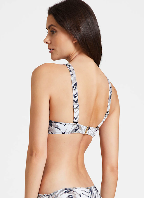Towar nowy, Biustonosz kąpielowy Aubade Safari Sands IV12 outlet, posiada komplet papierowych metek. Kostium kąpielowy posiada oryginalne opakowanie – pudełko.