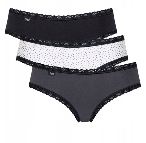 Bardzo wygodne, miękkie, bawełniane majtki typu Hipster , obszyte koronką w pasie i na nogawkach,  wyjątkowo przyjemne w dotyku biodrówki marki Sloggi.  Model  wykonany w całości z gładkiej bawełnianej dzianiny bardzo wysokiej jakości.