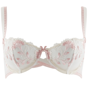 Biustonosz stworzony, aby zapewnić luksusowe uczucie najwyższego dopasowania materiału do ciała. Ten piękny biustonosz o wygodnym i nowoczesnym kroju jest wykonany z haftowanego w kwiatowy deseń tiulu ozdobionego żakardową koronką. Biustonosz jest wyposażony w fiszbiny, aby zapewnić doskonałe podniesienie i wsparcie bez dodatkowego usztywnienia, dając poczucie nadzwyczajnego komfortu użytkowania.
