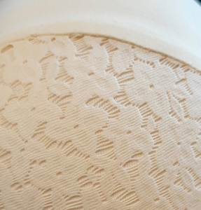 • Wysoki mostek  z koronki i gładkiego materiału, dla jeszcze lepszego uformowaniu biustu.