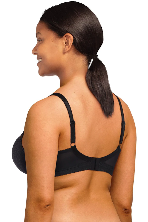 Biustonosz zapinany z tyłu na 2  haftki z 4 stopniową regulacją obwodu.