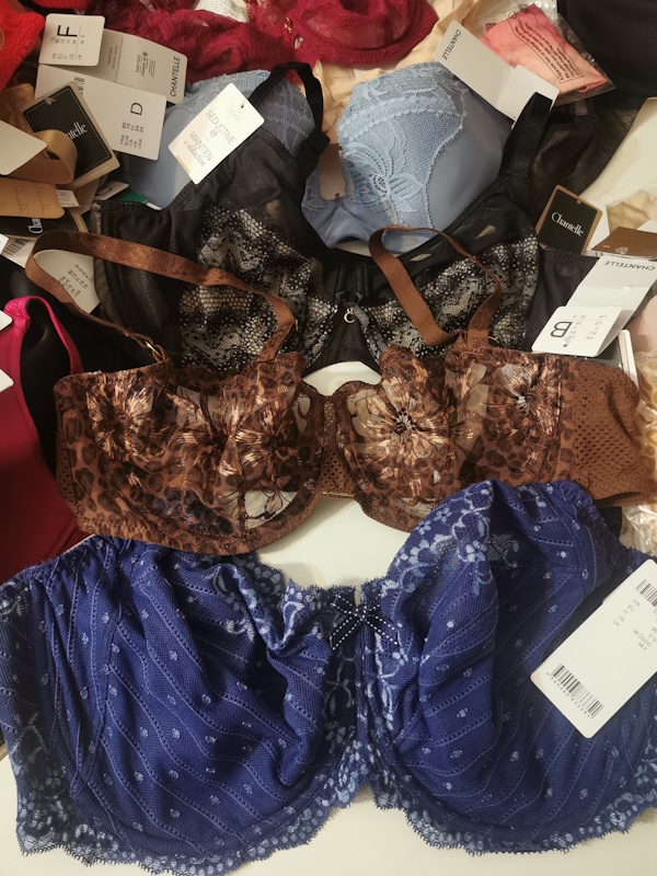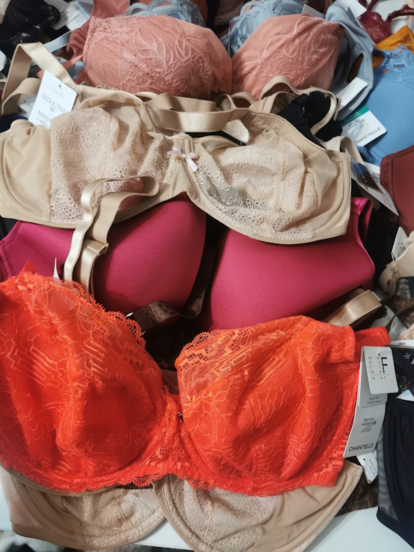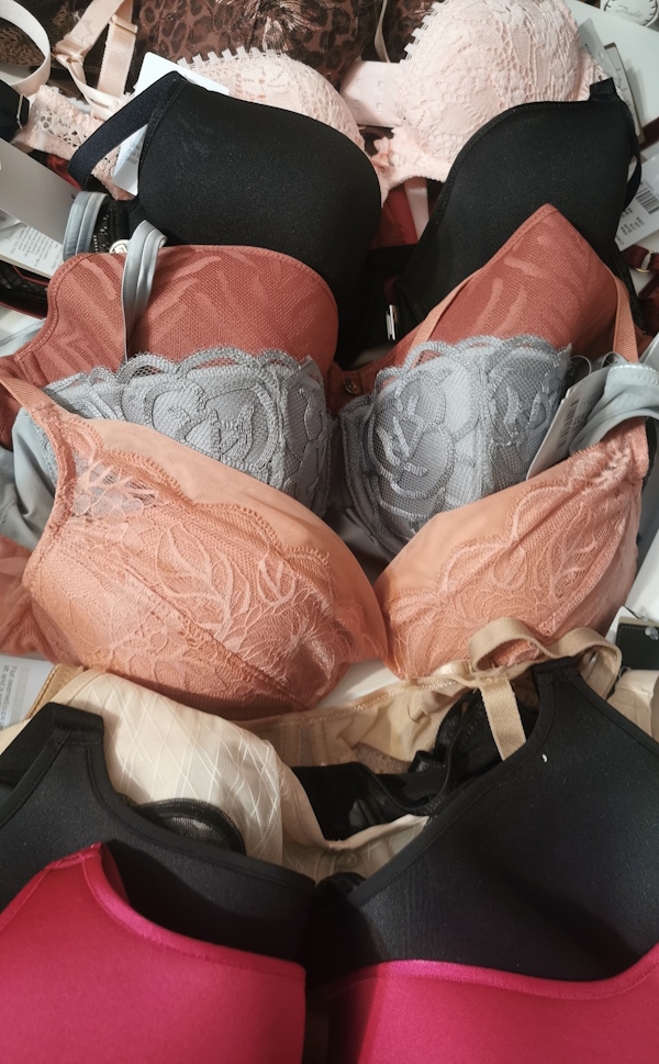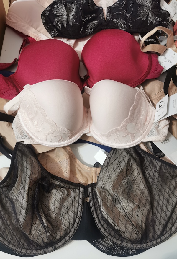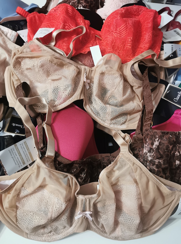 Przewaga koronkowych biustonosze z fiszbinami dużo miseczek E, F, G, H. Minimizery z fiszbinami i bez. Biustonosze z lekko usztywnianymi miseczkami: Memory, spacer.