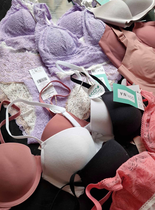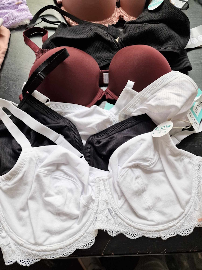 Megą wygodne biustonosze niemieckiej marki Dorina. Pakiet zawiera 7 biustonoszy push-up z fiszbinami i bez fiszbin, lekko usztywniane biustonoszy z fiszbinami, koronkowe biustonoszy z fiszbinami, koronkowe biustonoszy lekko usztywniane bez fiszbin, klasyczne biustonoszy z fiszbinami , bezszwowe klasyczne lekko usztywniane biustonoszy 4 szt, bawełniane biustonoszy bez fiszbin 4 szt.
