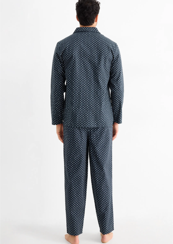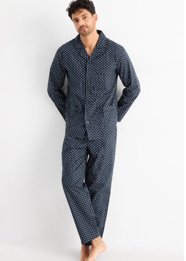 Elegancka męska piżama bawełniana C&A 100% bawełna. Spodnie i długi rękaw 100% bawełna, komplet bluzka zapinana na guziki i spodnie.