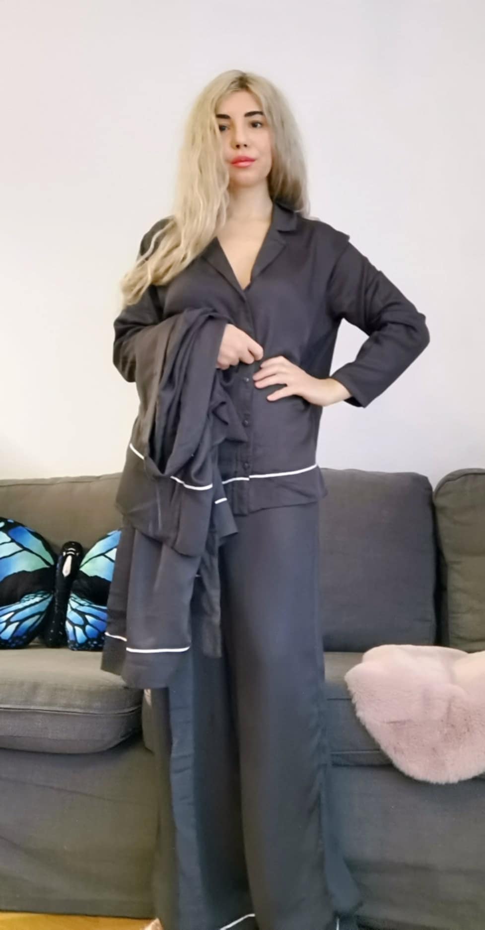 Towar nowy, Elegancka piżama damska zapinana z długimi spodniami Passionata Maya outlet, posiada oryginalne papierowe metki.