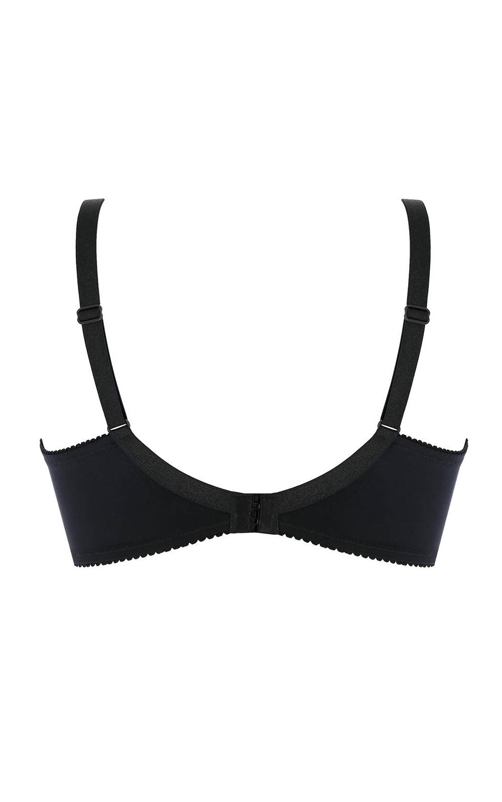 Biustonosz zapinany z tyłu na 2/3 haftki w zależności od rozmiaru, z trzystopniową regulacją obwodu.