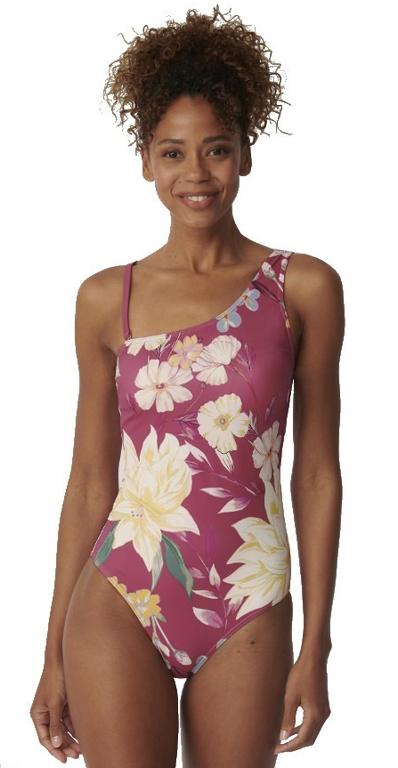 Jednoczęściowy strój kąpielowy delikatnie modelujący kobiecą sylwetkę z lekko usztywnianymi, formowanymi miseczkami bez fiszbin, z okrągłym dekoltem, pięknie podkreślającym kobiece walory.