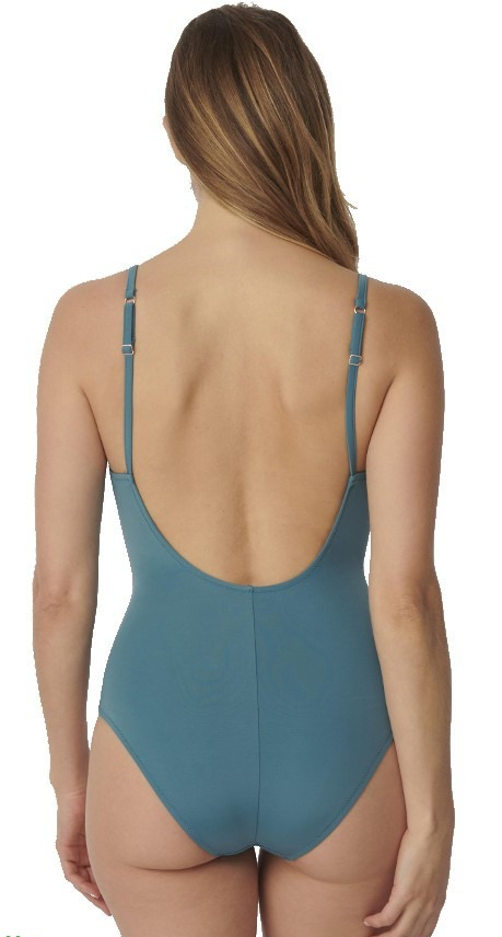 Jednoczęściowy strój kąpielowy delikatnie modelujący kobiecą sylwetkę z lekko usztywnianymi, formowanymi miseczkami bez fiszbin, z klasycznym  dekoltem V, pięknie podkreślającym kobiece walory.