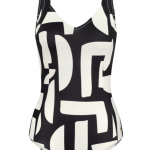 Jednoczęściowy strój kąpielowy delikatnie modelujący kobiecą sylwetkę z miękkimi miseczkami na fiszbinach, z klasycznym  dekoltem w literze V, pięknie podkreślającym kobiece walory.