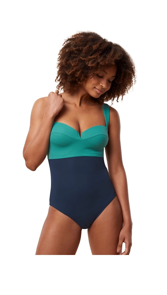 Jednoczęściowy strój kąpielowy modelujący kobiecą sylwetkę, z usztywnianymi miseczkami, pięknie podkreślającym kobiece walory.