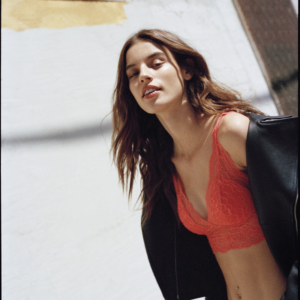 Piękny biustonosz typu longline z miękkimi miseczkami z pionowym szwem, które stabilnie okalają i podtrzymują biust pomimo braku fiszbin.