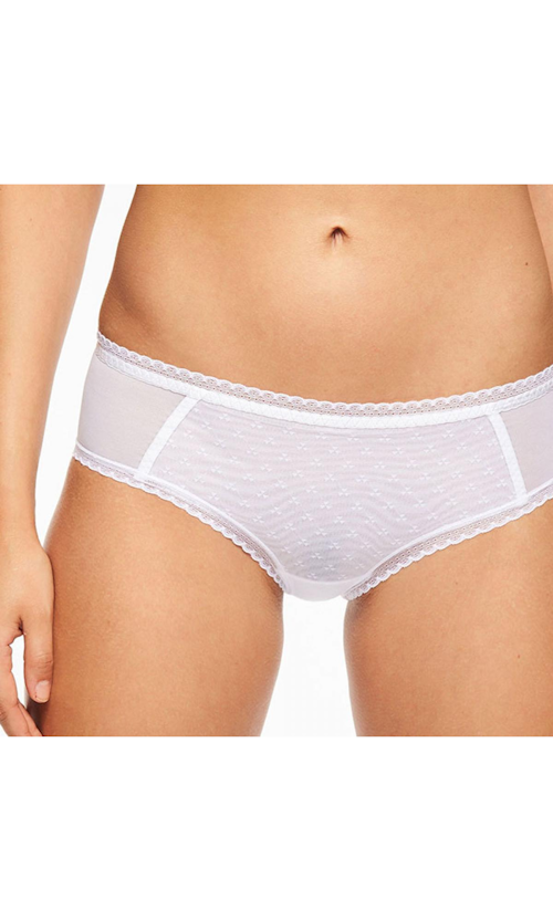 Koronkowe figi z obniżonym stanem Chantelle Courcelles C67940 to wygodne, niezwykle przyjemne w dotyku figi o kroju hipster z dość szerokimi bokami i lekko obniżonym stanem.
