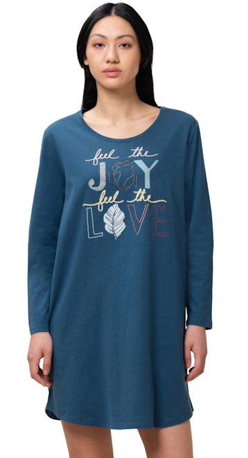 Koszulka nocna z długim rękawem z cienkiej i przewiewnej bawełny z nadrukiem o motywie roślinnym.