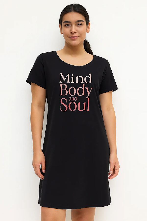 Koszula nocna z krótkim rękawem, wykonana z delikatnej bawełnianej dzianiny.