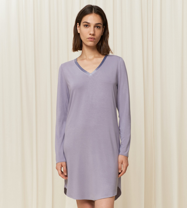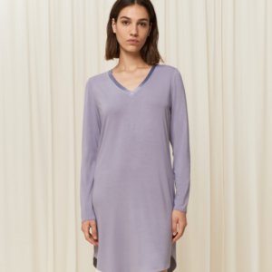 Koszula nocna z długim rękawem, wykonana z wiskozy.