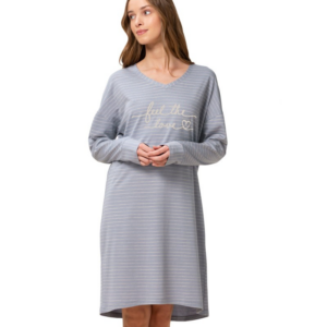 Koszula nocna z długim rękawem, wykonana z mieszanki bawełny i modalu.