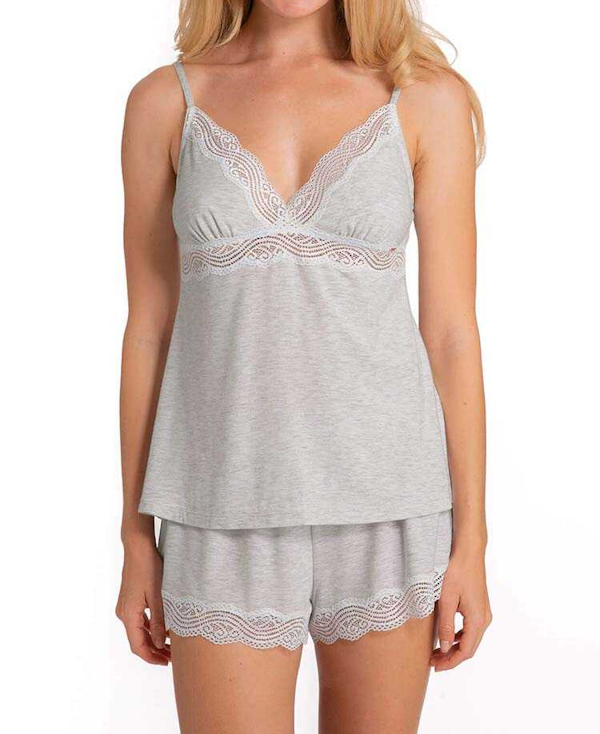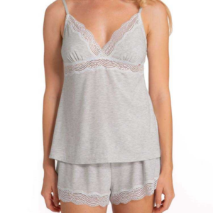 Letnia piżama damska z szortami z modalu Dorina Ady. Piżama damska komplet – podkoszulek na cienkich ramiączkach i szorty, wykonane z modalu, ozdobione koronką.