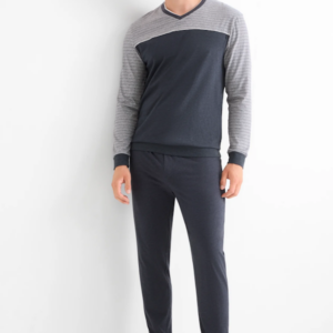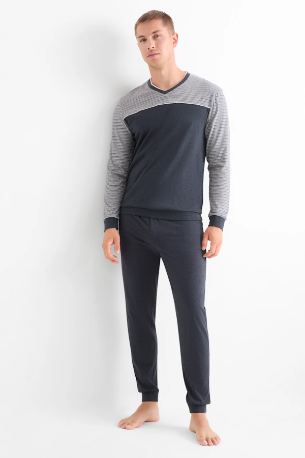 Męska piżama bawełna C&A długi rękaw, długie spodnie paseczki 84833