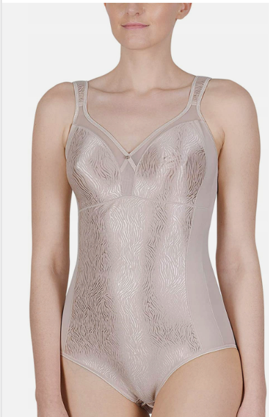 Body z trójkątnymi koronkowymi miseczkami bez fiszbin. Body o średnim stopniu modelowania. Body pięknie wyszczupla brzuch, talie, boki; podnosi i modeluje pośladki.