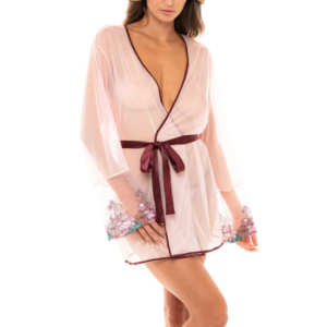 Oh La La Cheri 94-11463 zmysłowy leciutki szlafrok z pięknym haftem na szerokich mankietach wiązany na pasek