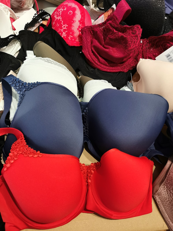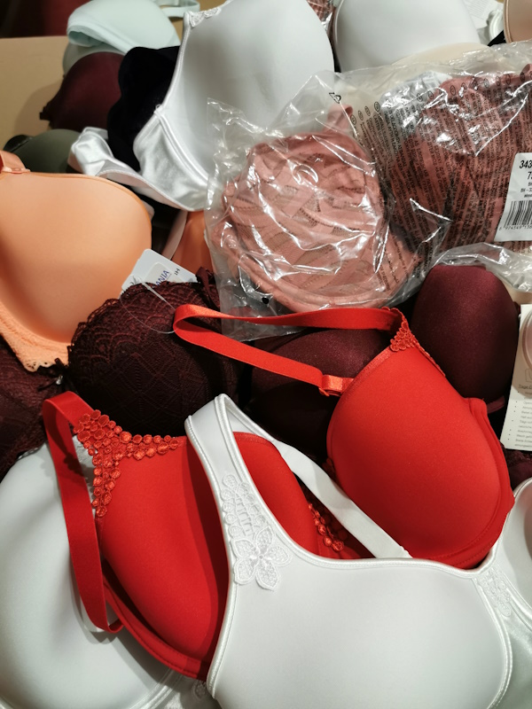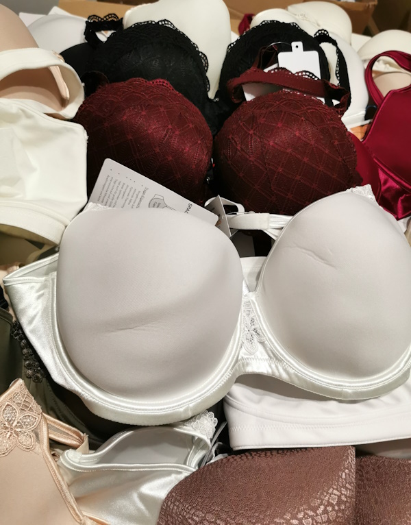 Większość biustonoszy lekko usztywnianych z fiszbinami; dalej biustonoszy lekko usztywniane bez fiszbin, nie duża ilość biustonoszy bez fiszbin oraz push-up. 99,9% biustonoszy z papierowymi metkami. Dużo modeli z aktualnej kolekcji.