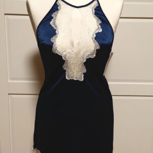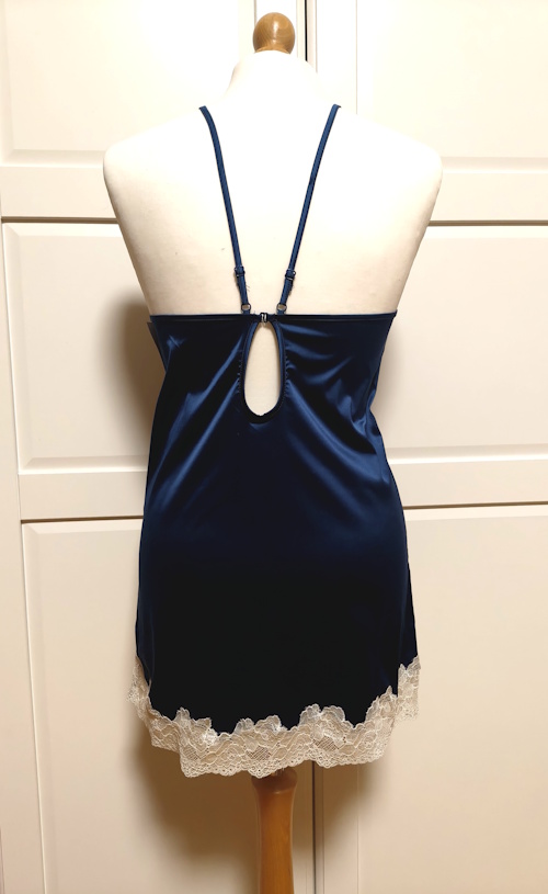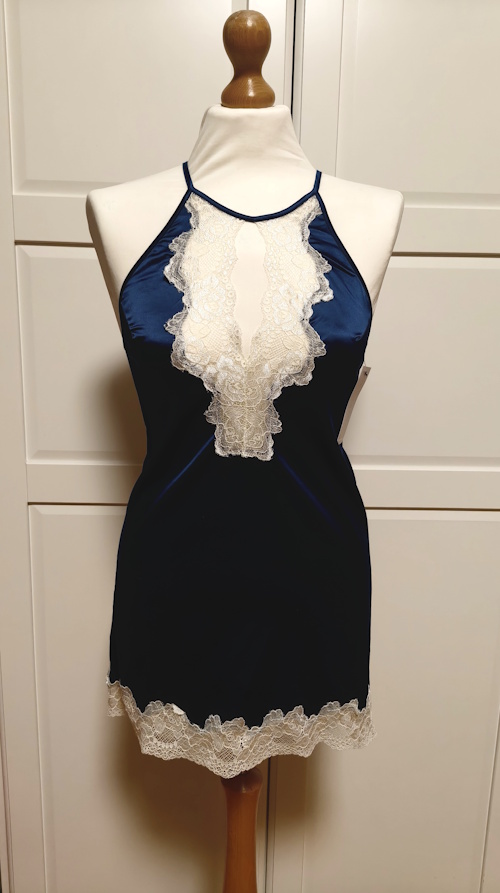 • Piękna krótka koszulka nocna z połyskującej satyny, ozdobiona koronką.