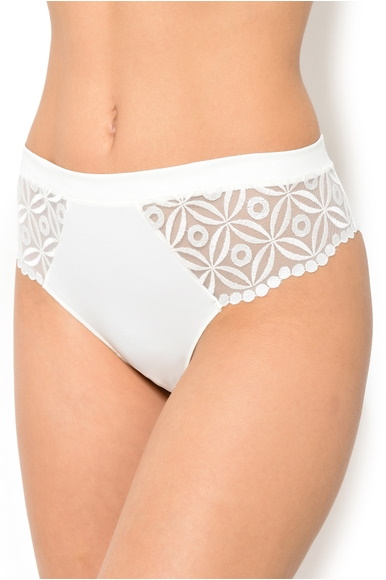 Simone Perele Instant 13H720 to wygodne, jednocześnie ozdobne figi o kroju Tai z wysokim wcięciem w okolicy bioder, średnio-zabudowanym tyłem i stanem na średniej wysokości.