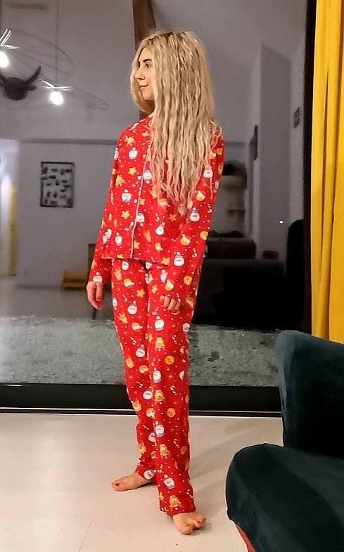 Towar nowy, Piżama damska zapinana na guziki outlet, posiada oryginalne papierowe metki. Zapakowana w świąteczny worek – gotowy pomysł na prezent.