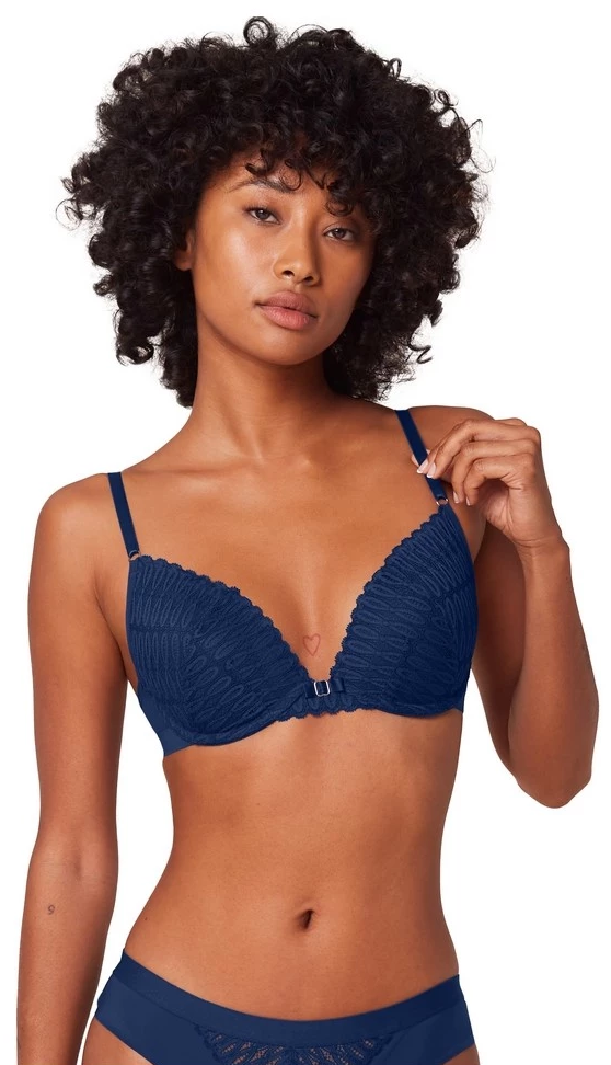 Ultralekki, usztywniany biustonosz typu push-up na fiszbinach z anatomicznie wyprofilowanym wewnątrz pogrubieniem tworzącym efekt pełnego, powiększonego optycznie biustu.