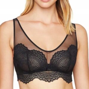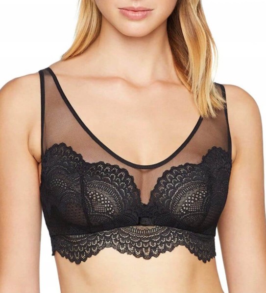 Miseczki wykonane z wyrafinowanej koronki zdobionej kwiatowym deseniem , wzmocnionym od wewnątrz mocnym elastycznym tiulem.