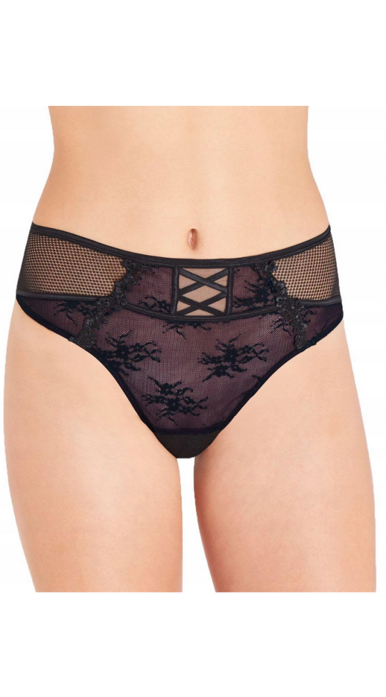 Majtki typu string, z szerokimi bokami i wysokim stanem.
