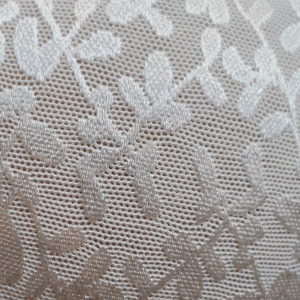 Figi wykonane są z innowacyjnej, oddychającej, płaskiej koronki z ciekawym efektem, który nadaję modelu połyskający wzór na matowym tle tiulu. Połyskującego roślinnego wzory jest więcej z przodu i mniej z tylu.
