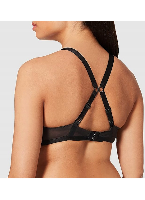 • Boczne wstawki z elastycznej siateczki z tiulu z delikatnym haftem podnoszą i zbierają naturalnie biust od strony pachy nie powiększając go.
