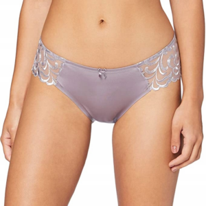 Zabudowane figi z podwyższonym stanem z oddychającego materiału – mikrofibry. Przód i tył majtek wykonane z elastycznego, gładkiego, lekko chłodzącego materiału z lekkim połyskiem. Boki modelu wykonane są z tiulu z przepięknym haftem o motywie kwiatowym z falowanymi wykończeniami na dole. Przezroczysta, oddychająca koronka nadaje modelowi lekkości i wizualnie wysmukla biodra i wydłuża nogi.