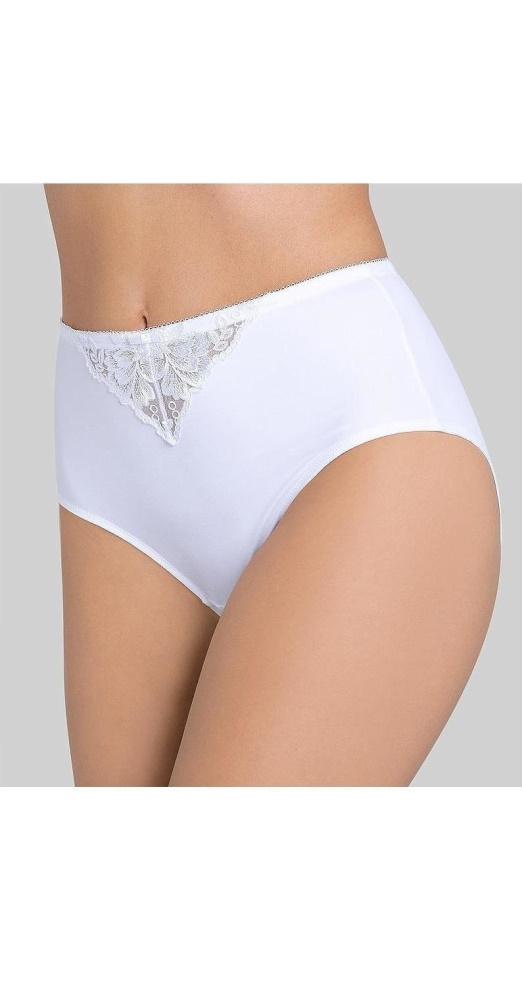 Eleganckie, ozdobione pięknym haftem z motywem kwiatowym, wysokie figi, o lekkim stopniu modelowania sylwetki.
