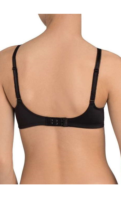 Biustonosz zapinany z tyłu na 2 haftki. Miejsce zapięcia jest niezwykle miękkie i delikatne, dzięki wszytej warstwie miękkiego materiału.