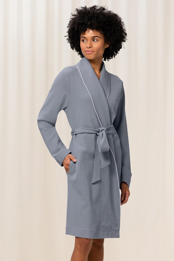 Elegancki szlafrok damski uszyty z materiału o ciekawej fakturze.
