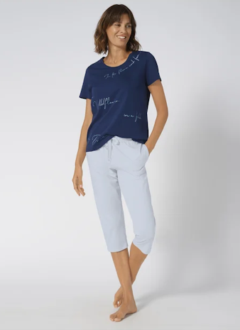 Towar nowy, Piżama damska z spodniami capri Triumph Sets PK Capri X outlet, posiada oryginalne, papierowe metki. Produkt nowy i 100% oryginalny bez żadnych uszkodzeń.