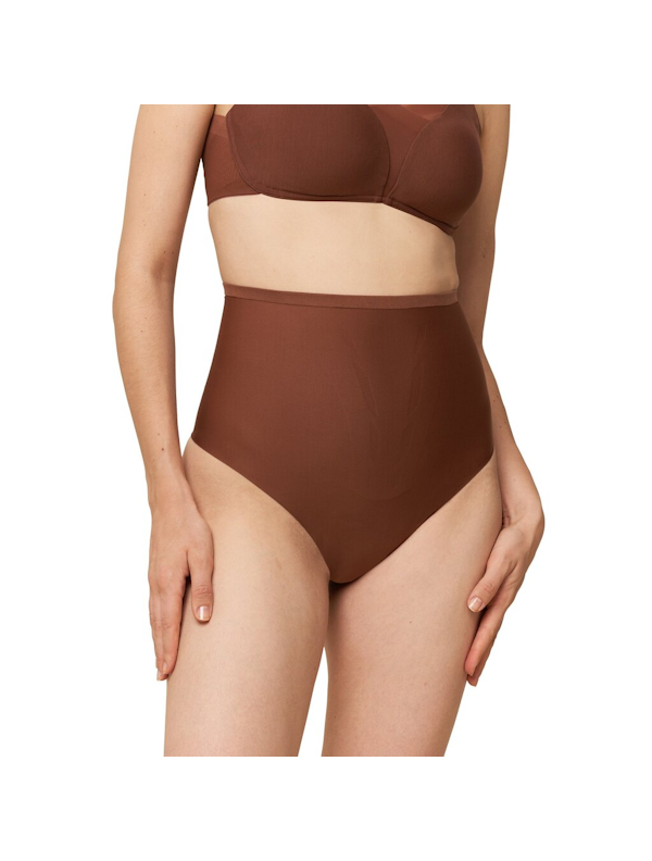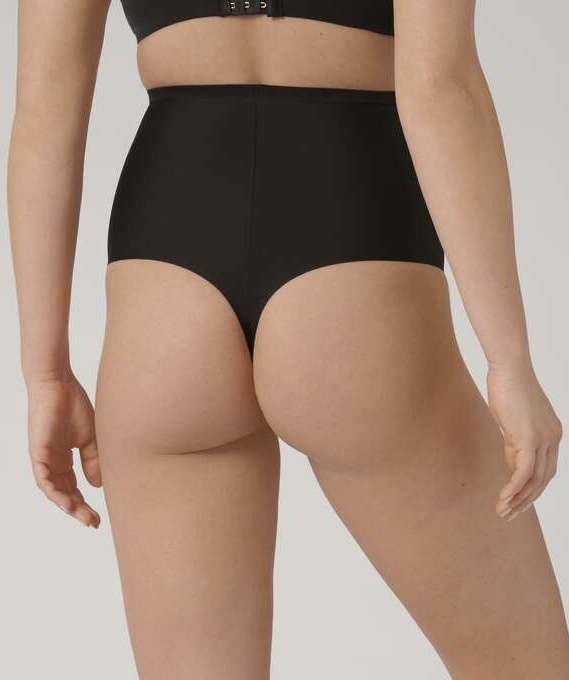 Triumph Shape Smart Highwaist String to modelująco- korygujące figi z bardzo wysokim stanem. Figi wykonane z gładkiego, matowego, mocno modelującego materiału.