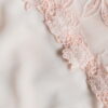 Boki i tył modelu wykonane są z podwójnego tiulu w kwiatowy wzór.