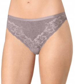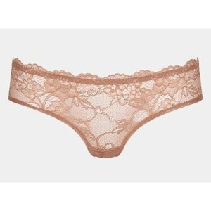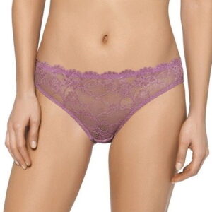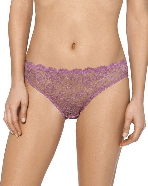 Majtki o klasycznym kroju Tai, z lekko podniesioną talią, średnimi wycięciami w nogawkach, uszyte z delikatnej koronki w kwiatowy deseń.