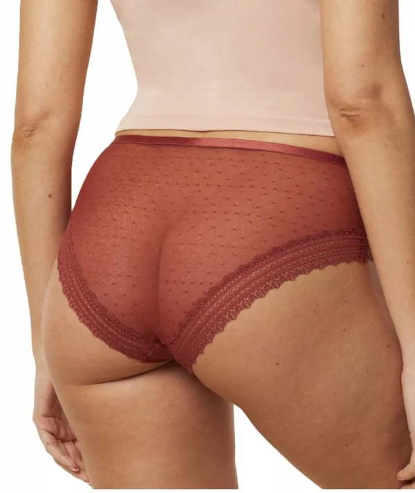 • Majtki wykonane z pojedynczej warstwy delikatnego tiulu oraz z płasko przylegającej, miękkiej koronki zapewniającej idealne dopasowanie.