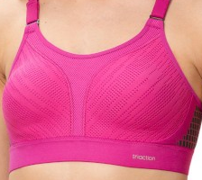 Sportowy biustonosz bez fiszbin Triumph Triaction z bezszwowymi, termicznie formowanymi miseczkami. Dzięki laminowaniu 3D, mocnej szerokiej gumce oraz wyjątkowemu kształtu miseczek biustonosz zapewnia idealne podtrzymanie i stabilizacje biustu podczas bardzo intensywnej aktywności sportowej. Nadaję się dla  bardzo aktywnych sportów. Model jest wykonany z mocnego elastycznego materiału, pomiędzy miseczkami znajduje się mocna 2-warstwowa siata, lekko przezroczysta.