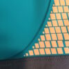 Ciekawe wykończenie z tyłu-  krzyżowe  albo klasyczne łączenie ramiączek – pozwolą ubierać biustonosz pod wycięte sportowe bokserki. Tył wykonany jest z mocnej, elastycznej, gładkiej lekko błyszczącej tkaniny z wzorem geometrycznym.