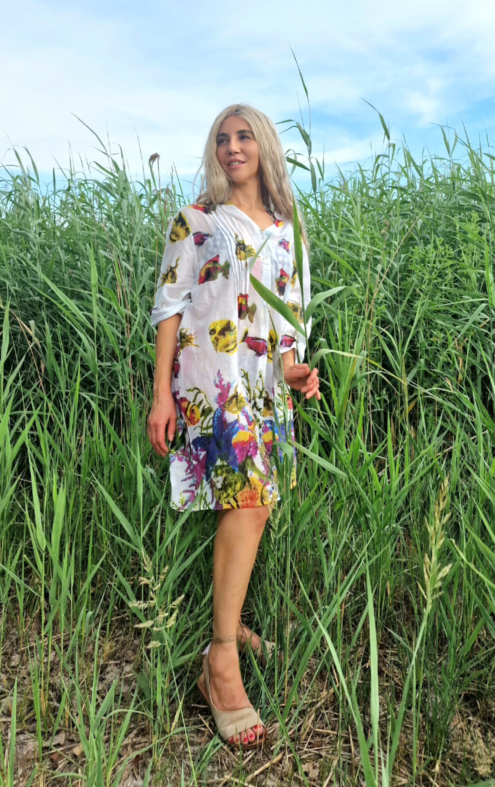 Tunika koszulowa plażowa Magic Mare Ryby, bawełna Tunika plażowa, odzież plażowa, akcesoria plażowe.