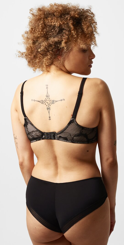 • Pełne miseczki o kroju „full cup” oraz wysoki mostek zapewniają stabilizacje biustu.