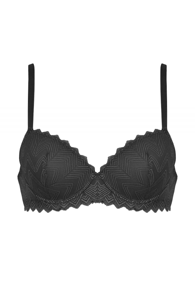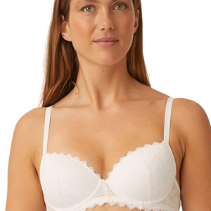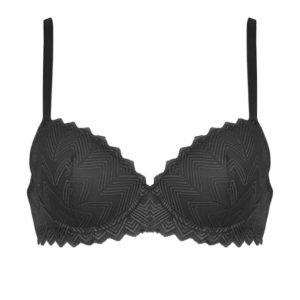 Piękny, usztywniany biustonosz z głębokimi gładkimi miseczkami obszytymi koronką na fiszbinach: