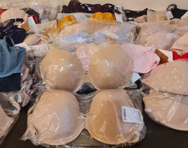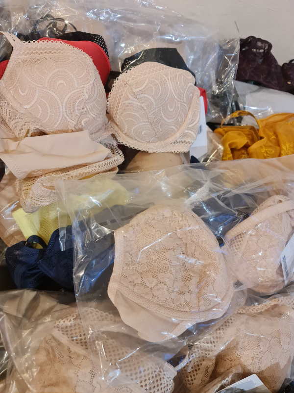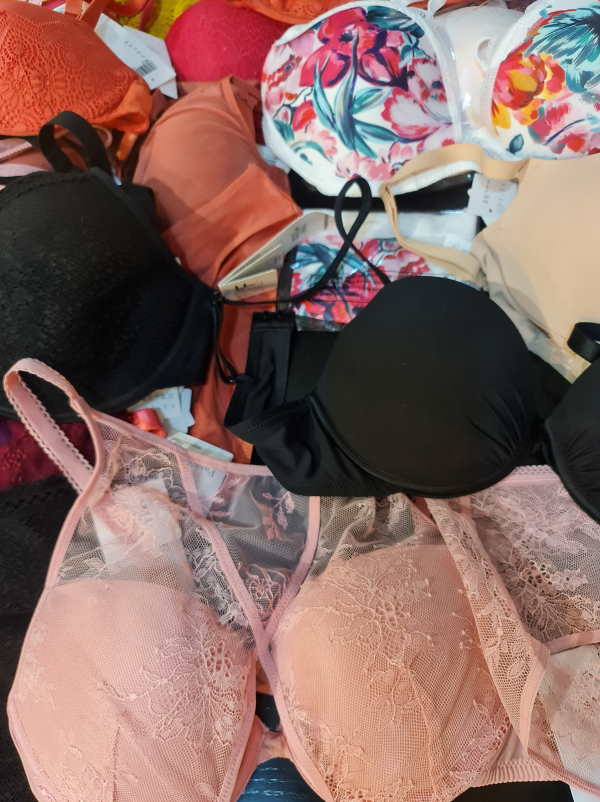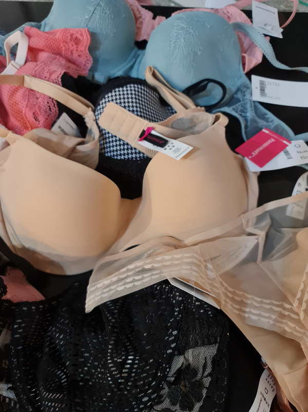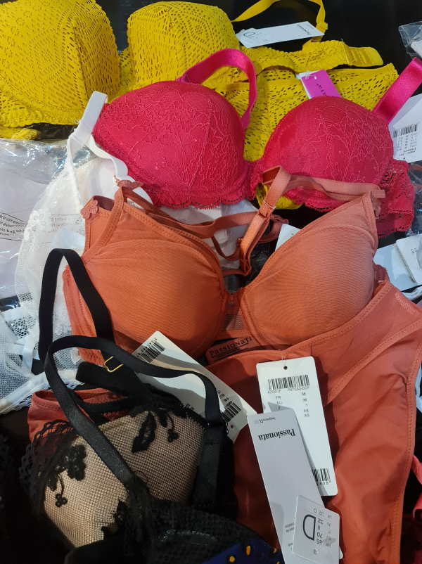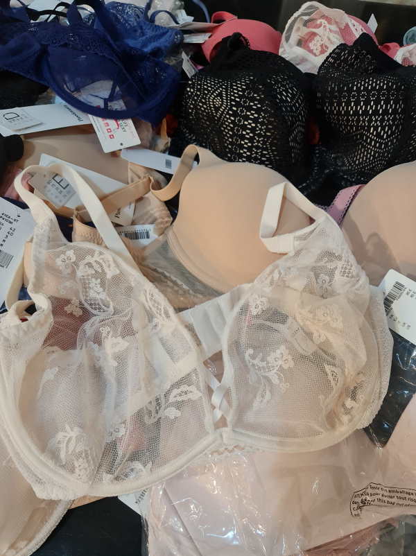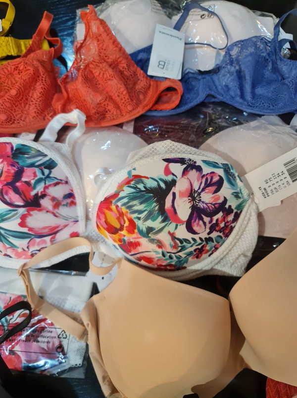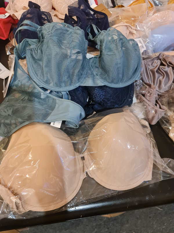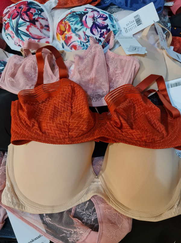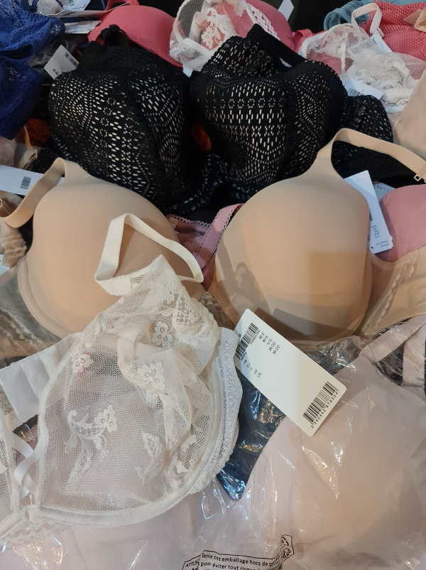 Chantelle outlet. Right now the majority is padded bras or spacer padded bras. There are different colors in the lot: basic colors, such as beige and black plus colorfull models. The sizes of the bras start with 65 D, up to 90D. Cups A are less then 3%. The majority of the cups C, D, E, there is smaller amount of very big cups such as F, G